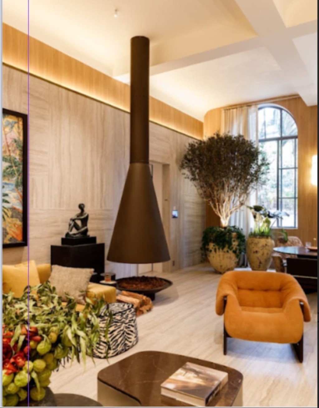 Esteticamente, duas vertentes se destacaram: as lareiras minimalistas, discretas e integradas à arquitetura, e as lareiras escultóricas, de formatos cilíndricos, cônicos ou suspensos, que assumem protagonismo visual.